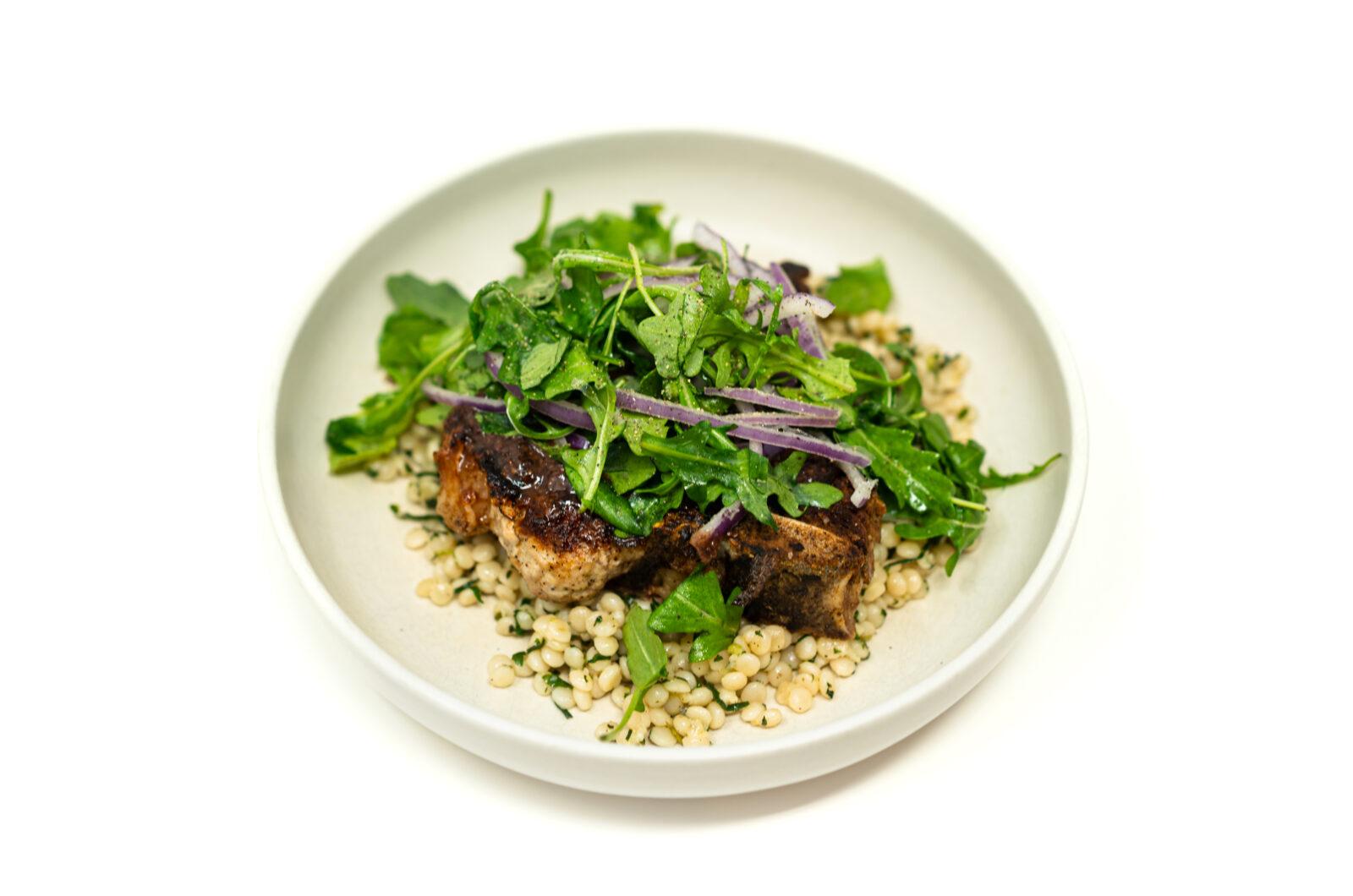 These succulent lamb chops are brined overnight to ensure peak tenderness, then seared and finished with a rich mustard-wine pan sauce. Served over a bed of lemon herb pearl couscous, the dish offers a perfect balance of bright acidity and deep savory notes.