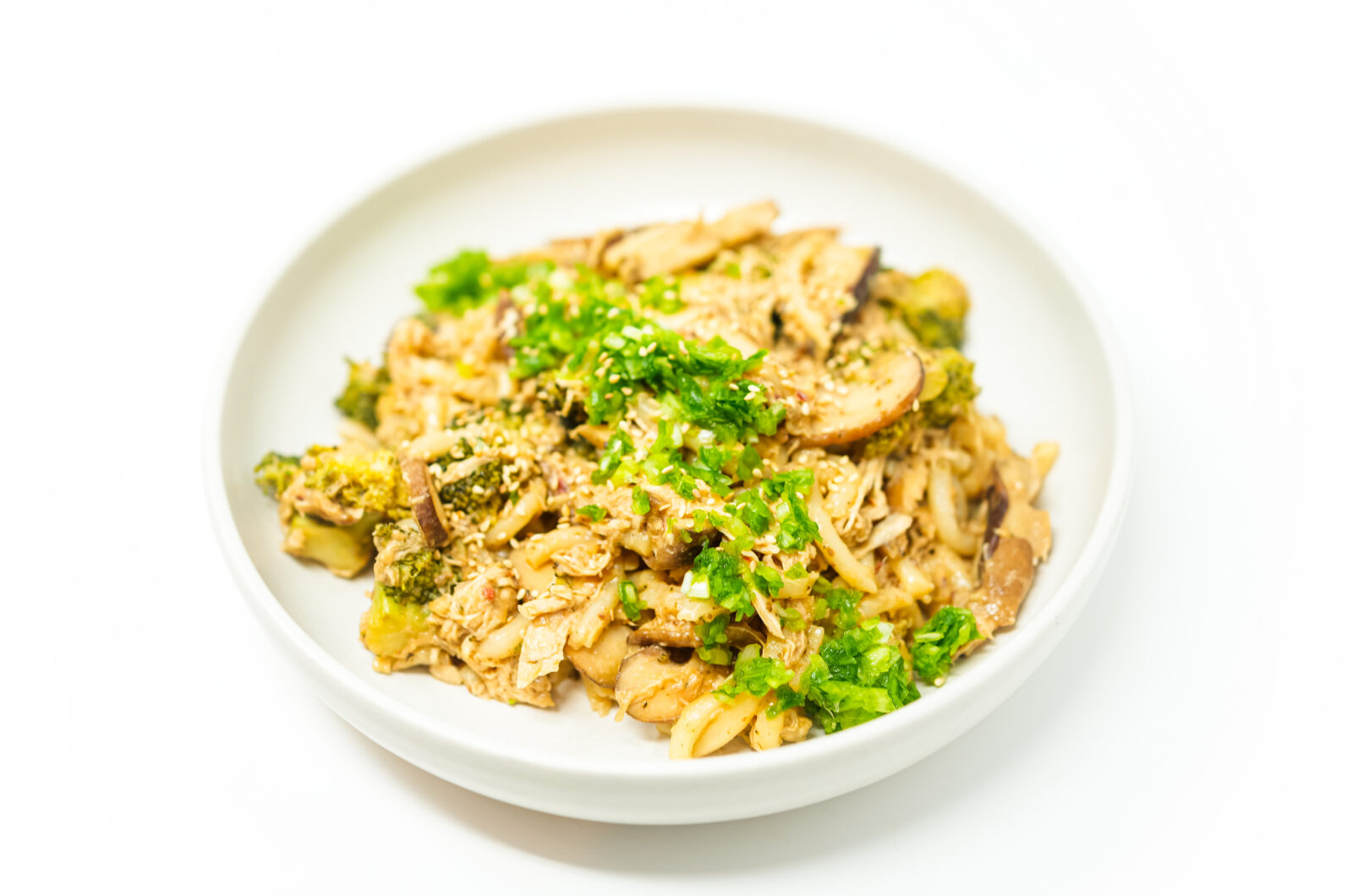 minutesThis Chicken, Broccoli, and Shiitake Mushroom Stir Fry combines tender rotisserie chicken, crisp broccoli, and savory shiitake mushrooms in a flavorful, umami-rich sauce. Garnished with fresh green onions and toasted sesame seeds, this quick and delicious dish is perfect served over rice or noodles.