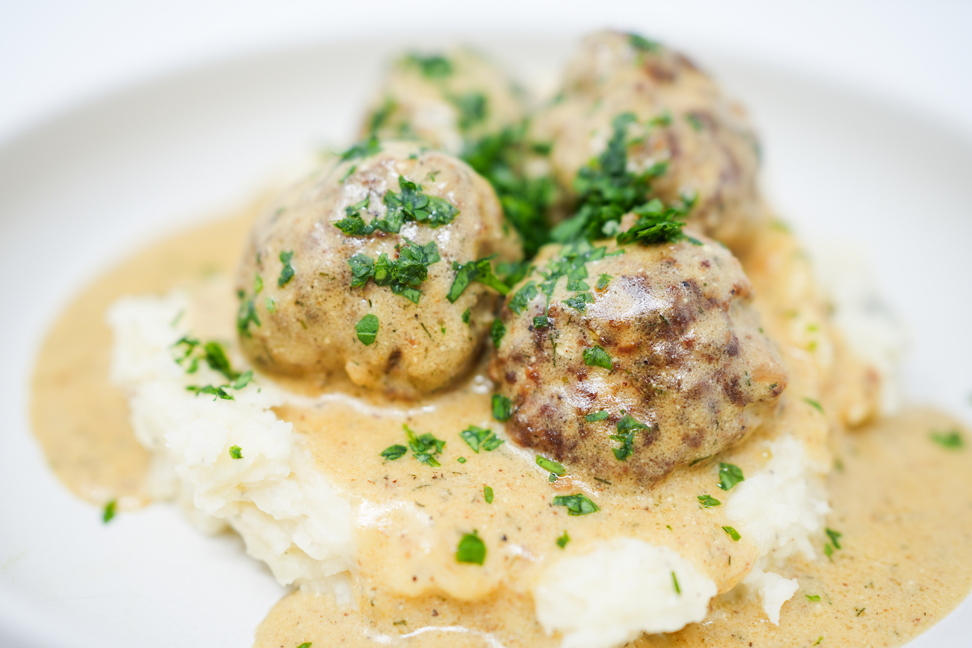 The base of the dish consists of perfectly seasoned meatballs, a harmonious blend of ground beef and pork that ensures each bite is juicy and rich. The meats are mixed with breadcrumbs, which help to bind the ingredients and retain the moisture, and heavy cream, adding a subtle richness that enhances the texture of the meatballs. Finely ground onion and a touch of nutmeg provide a sweet and spicy background, while freshly chopped dill infuses the meatballs with a herbaceous brightness that sets this recipe apart from its more traditional counterpart.