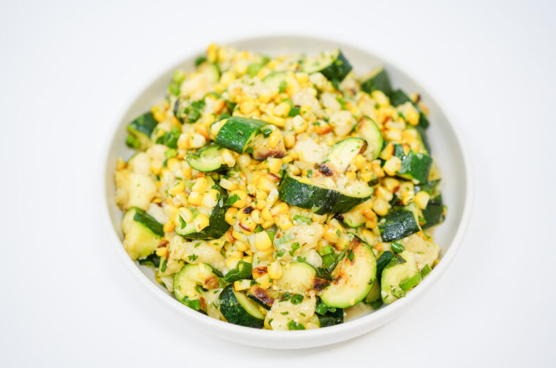 The Grilled Corn, Zucchini, and Asadero Cheese Salad pairs beautifully with Mexican-Inspired Honey Lime Drizzled Shrimp Cakes, creating a harmonious and complementary meal. The smoky, charred flavors of the grilled vegetables in the salad perfectly contrast with the sweet and tangy notes of the honey lime drizzle on the shrimp cakes. The creamy asadero cheese and zesty lime vinaigrette enhance the overall freshness and brightness of the meal, making it a delightful combination of textures and flavors that celebrate the best of summer cuisine.