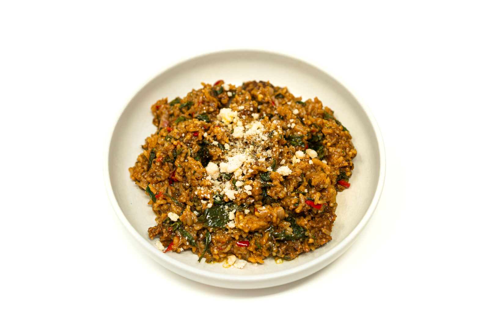 One-Pot Chorizo and Turnip Green Rice Pilaf