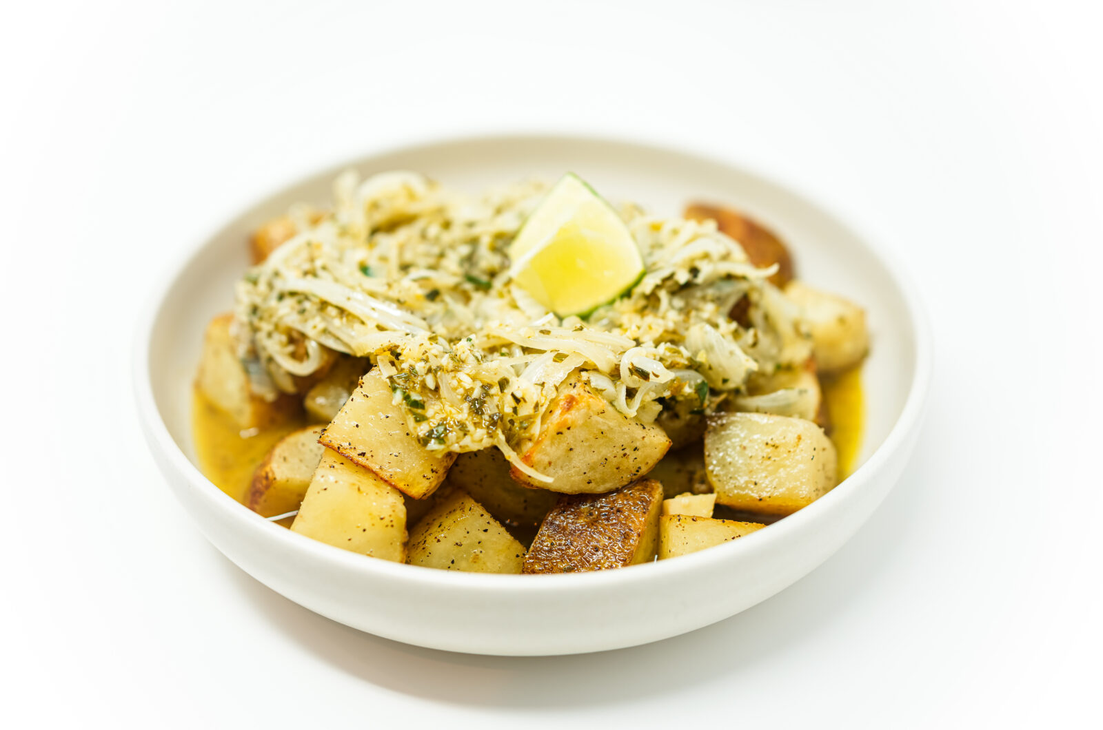 minutesRoasted Potatoes con Mojo features crispy Yukon gold potatoes tossed in a vibrant mojo sauce made with olive oil, garlic, onions, red wine vinegar, lemon juice, lime juice, and fresh cilantro. This dish combines the comforting warmth of roasted potatoes with the bright, tangy flavors of a traditional Spanish-inspired sauce for a delicious and unique side.