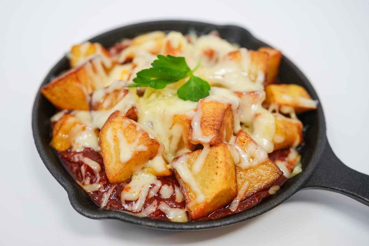 The foundation of this culinary delight is rooted in the heart of Spain, where Patatas Bravas reign supreme as a cherished tapas dish. Patatas Bravas traditionally feature crispy, deep-fried potatoes, served atop a rich tomato based sauce. These golden, crunchy potatoes become the canvas for a bold and flavorful sauce, creating a tantalizing experience for the palate.