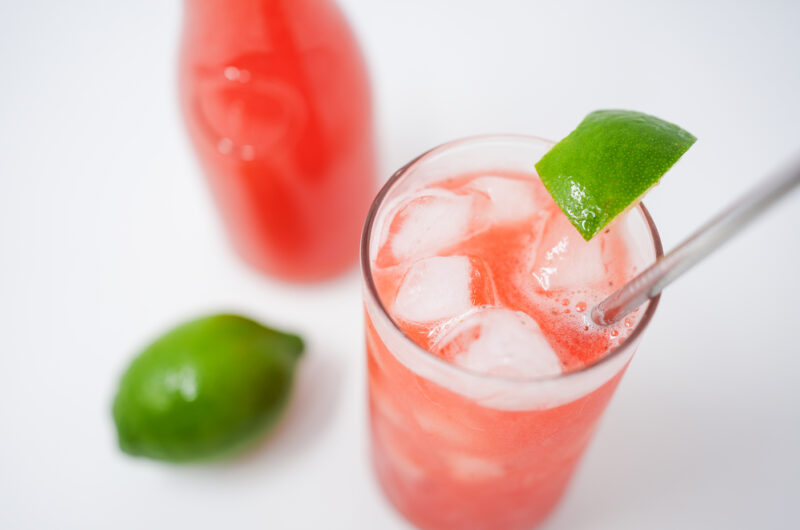 Once the strawberry juice is strained, it is returned to the blender, where honey and lime juice are added. Honey enhances the natural sweetness of the strawberries, creating a rich and flavorful base. At the same time, lime juice adds a bright, tangy note that balances the sweetness and provides a refreshing citrus kick.