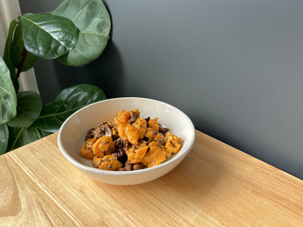 Lamb, Mushroom, & Thyme Sweet Potato Gnocchi
