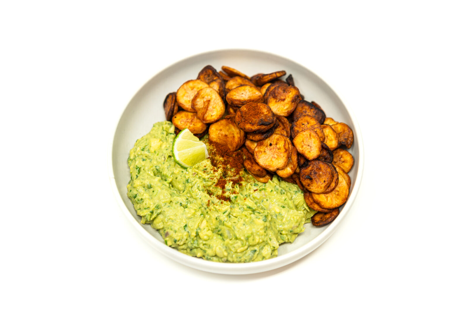 This fusion appetizer pairs house-made crispy banana chips with a savory guacamole focused on the umami depth of macerated shallots. The result is a sophisticated balance of salty, sour, and sweet notes that elevates the standard chips and dip experience.