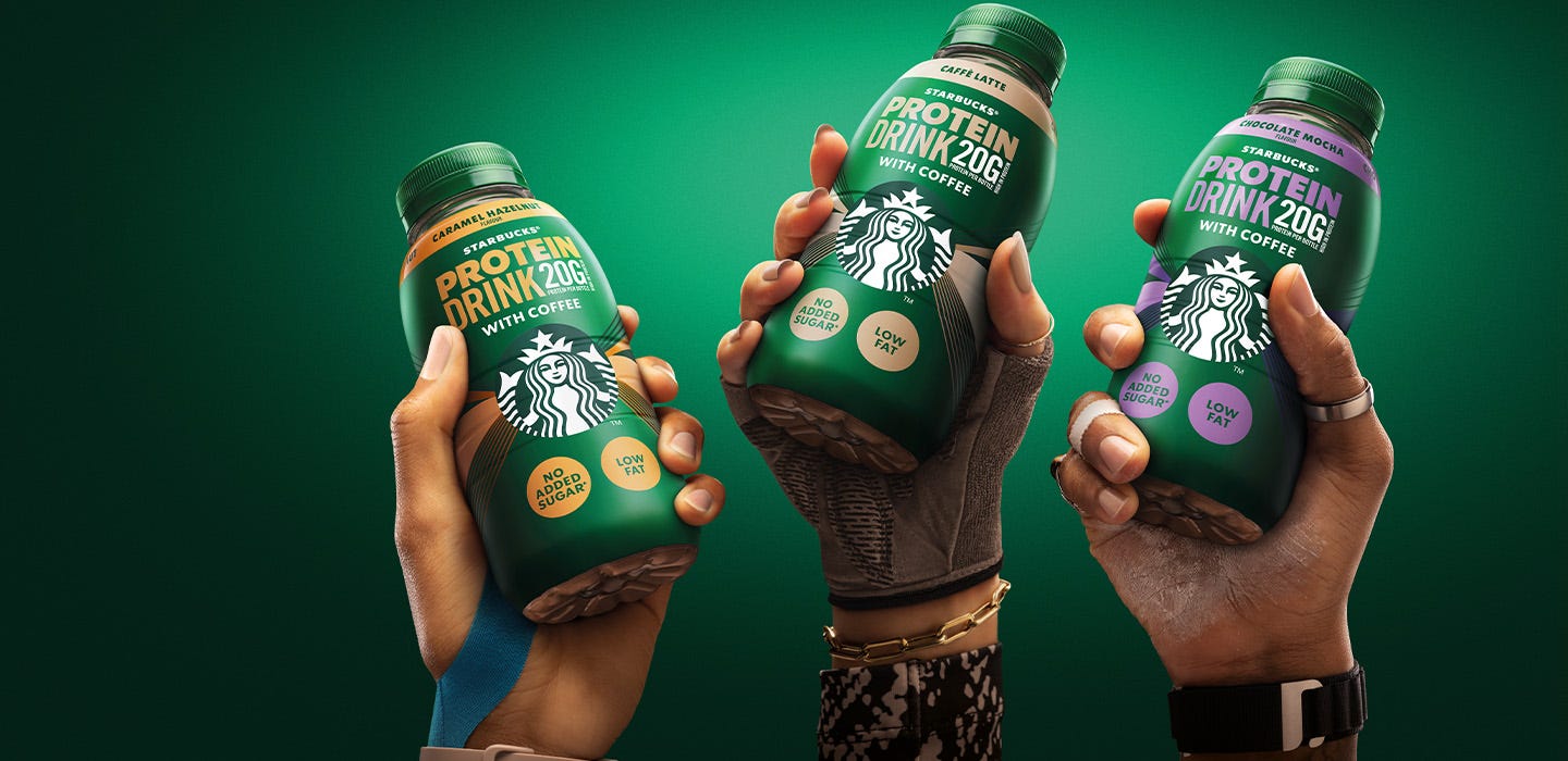 In 2025, Starbucks announced a new line of Protein Lattes and Protein Cold Foam that deliver up to 36 grams of protein in a single grande. “Protein is HERE,” the brand declares in a sizzle video for the launch, promising that you can “take your coffee to the next level” with a scoop of whey blended into your milk and foam.